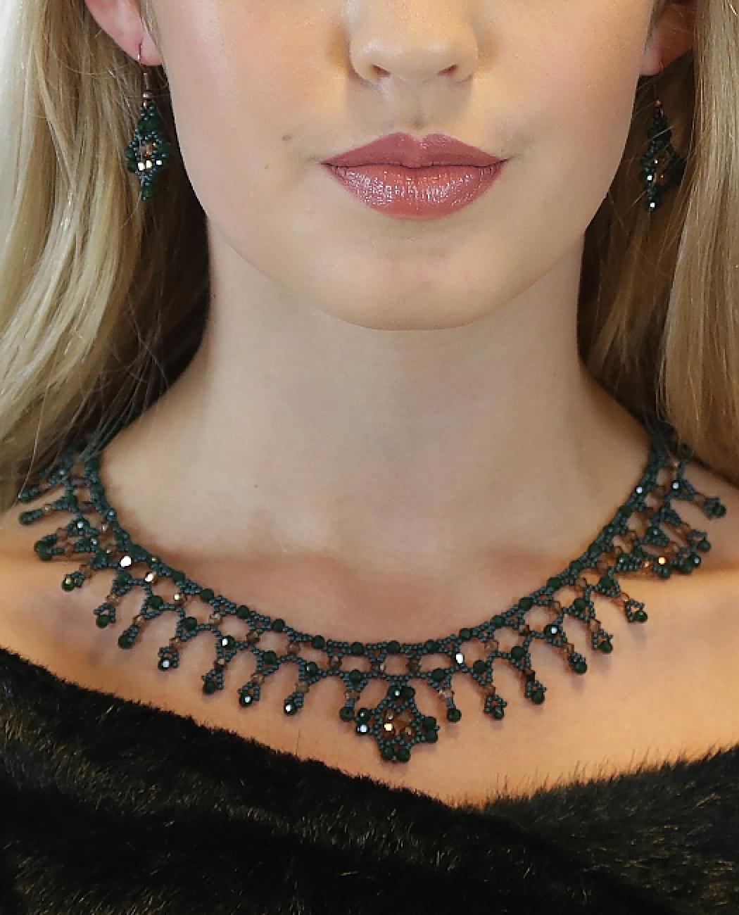 Gorgeous artistic piece! This set of brown and green beads has a unique allure. It evokes thoughts of classical antiquity. It is chic and adds a touch of elegance to your look.