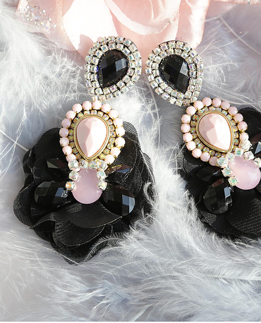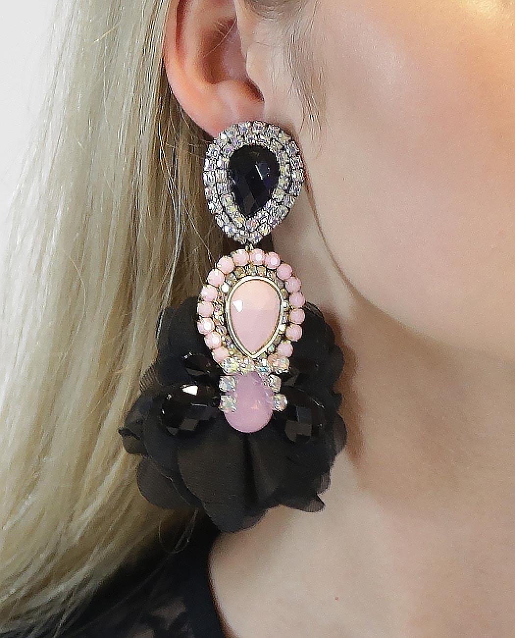 The black floral design will create a chic and lively look against your face. The addition of pink stones adds a touch of softness to the enchanting black aesthetic. These earrings are a guaranteed celebration, perfect for any occasion.