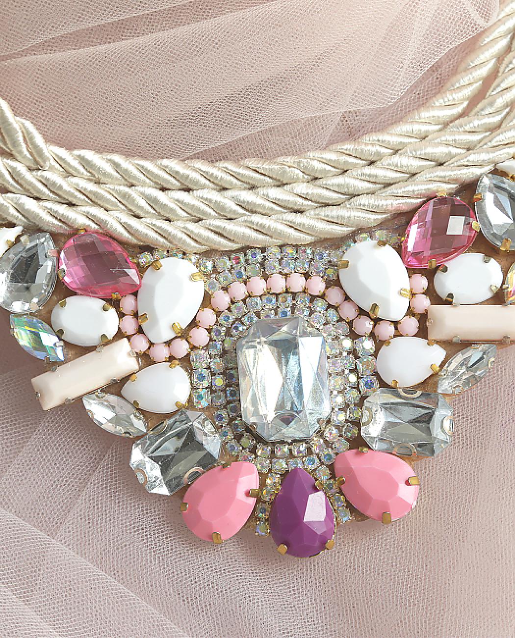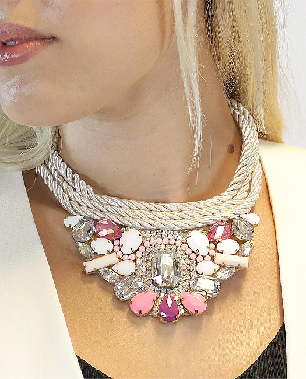 An absolute marvel of magnificence! You'll command attention effortlessly with this statement necklace. The combination of large stones and beautifully gleaming cord is a true showstopper. It enhances the elegance of a simple dress and adds a touch of allure to a daring, edgy look.