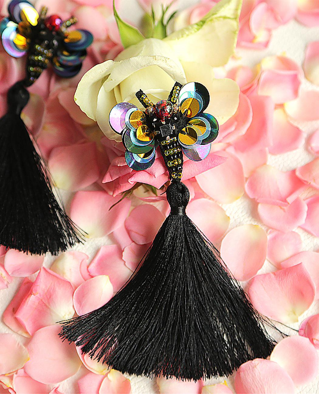 It's clear that the designer of these earrings took inspiration from bees. The beautiful colored sequins representing wings are very eye-catching. The black tassel adds a trendy and stylish look to these earrings. They are easy to pair with different outfits.